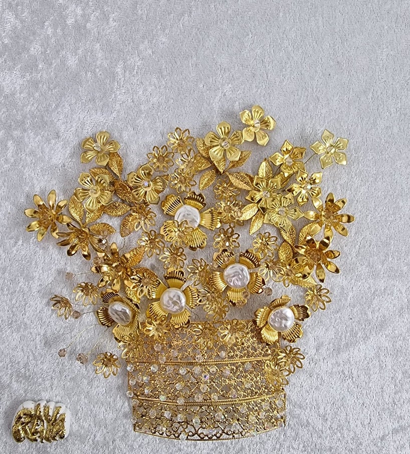 Raya uses semi-precious stones, natural stones, crystal, gold plating, silver plating, copper , natural tree branches, shells, and dental materials in her artworks.